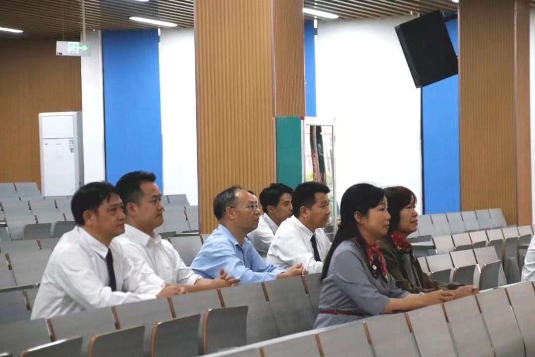 2023年11月7日上午,贵港市人大常委会主任彭东光率调研组一行6人到我校进行考察调研,桂平市人大常委会主任蒙爱杏,副主任陆桂明及相关领导陪同调研,我校张毅书记带领调研组成员视察调研我校。
